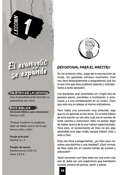 In a society that is constantly changing, in which emotions are exalted as the engine of human existence, the preteens need to have a firm foundation. That foundation must be in the One who does not change. In this handbook you will find lessons that will help your students to get to know Jesus better through people who had a relationship with Him and followed Him despite the mockery, difficult circumstances and anxieties experienced. They will be challenged to walk close to the One who is faithful and true.